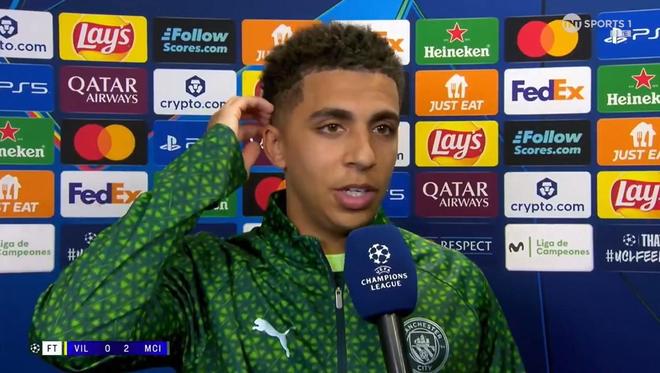 欧冠联赛阶段第3轮曼城客场2-0击败了比利亚雷亚尔。赛后,里科-刘易斯接受了TNT体育的采访。